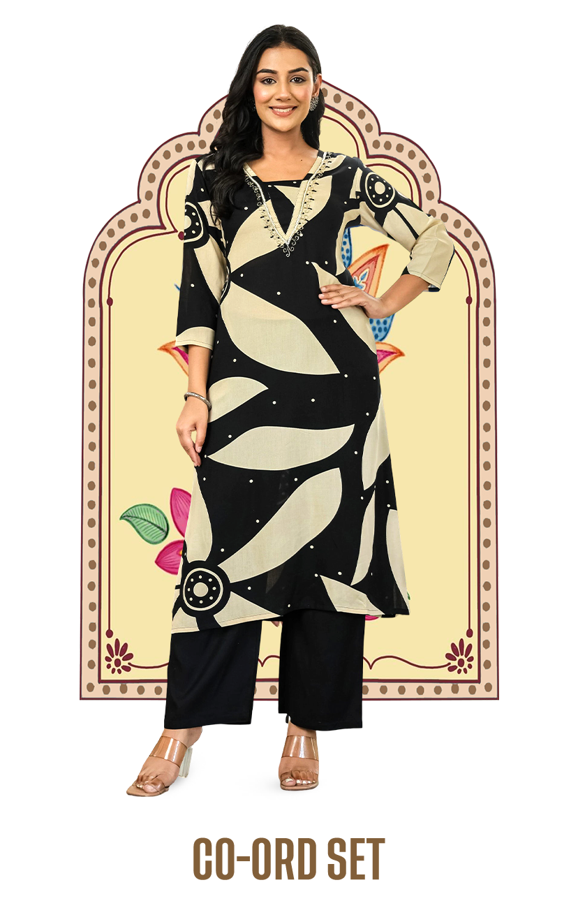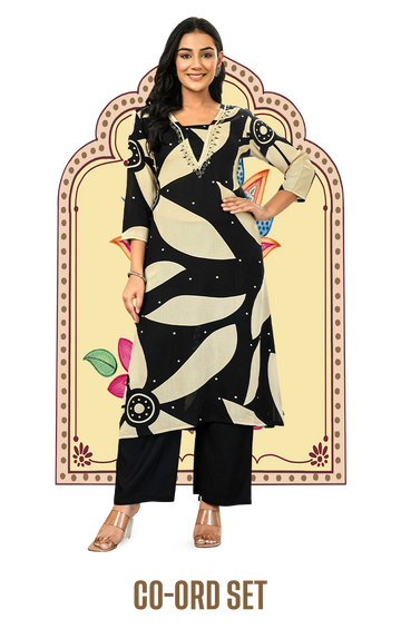 Step into timeless elegance with our Black Floral Printed Cotton Kurta Set, designed for effortless...