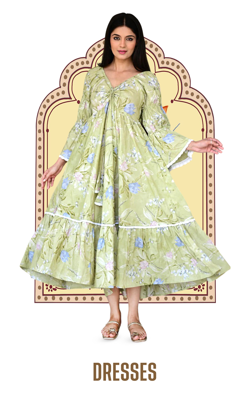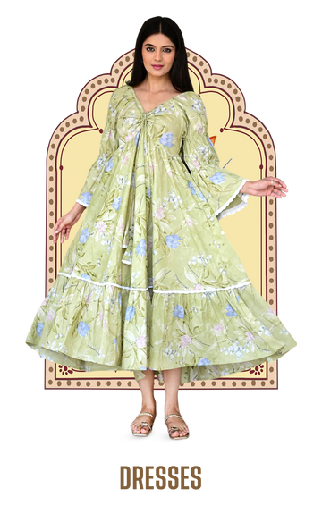 Breathe freshness into your style with this green ikat printed cotton kurta set from Sunheri....