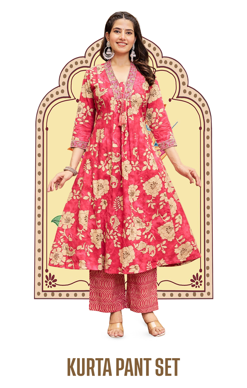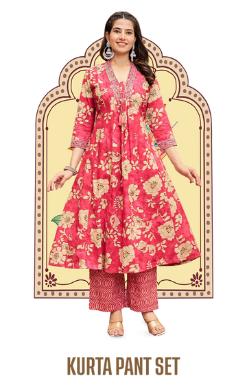 Add a vibrant touch to your ethnic wardrobe with this stunning magenta Anarkali kurta set....